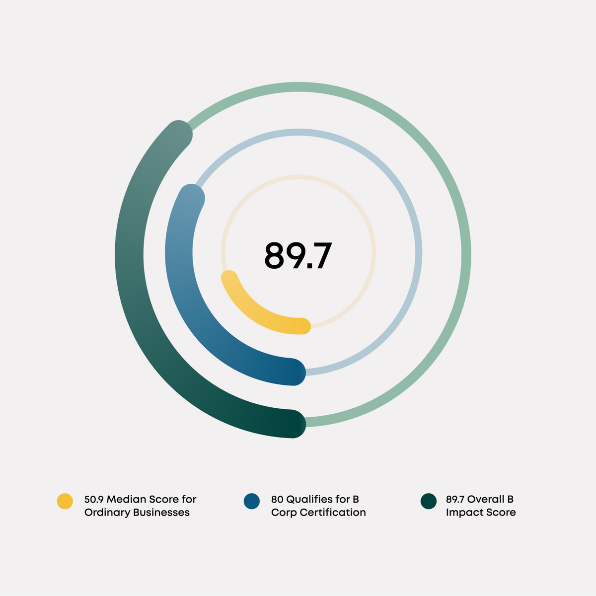 Becoming a B Corp™ wasn’t easy and the hard work doesn’t stop here. We look forward to achieving an even higher score when we re-certify in 2026.