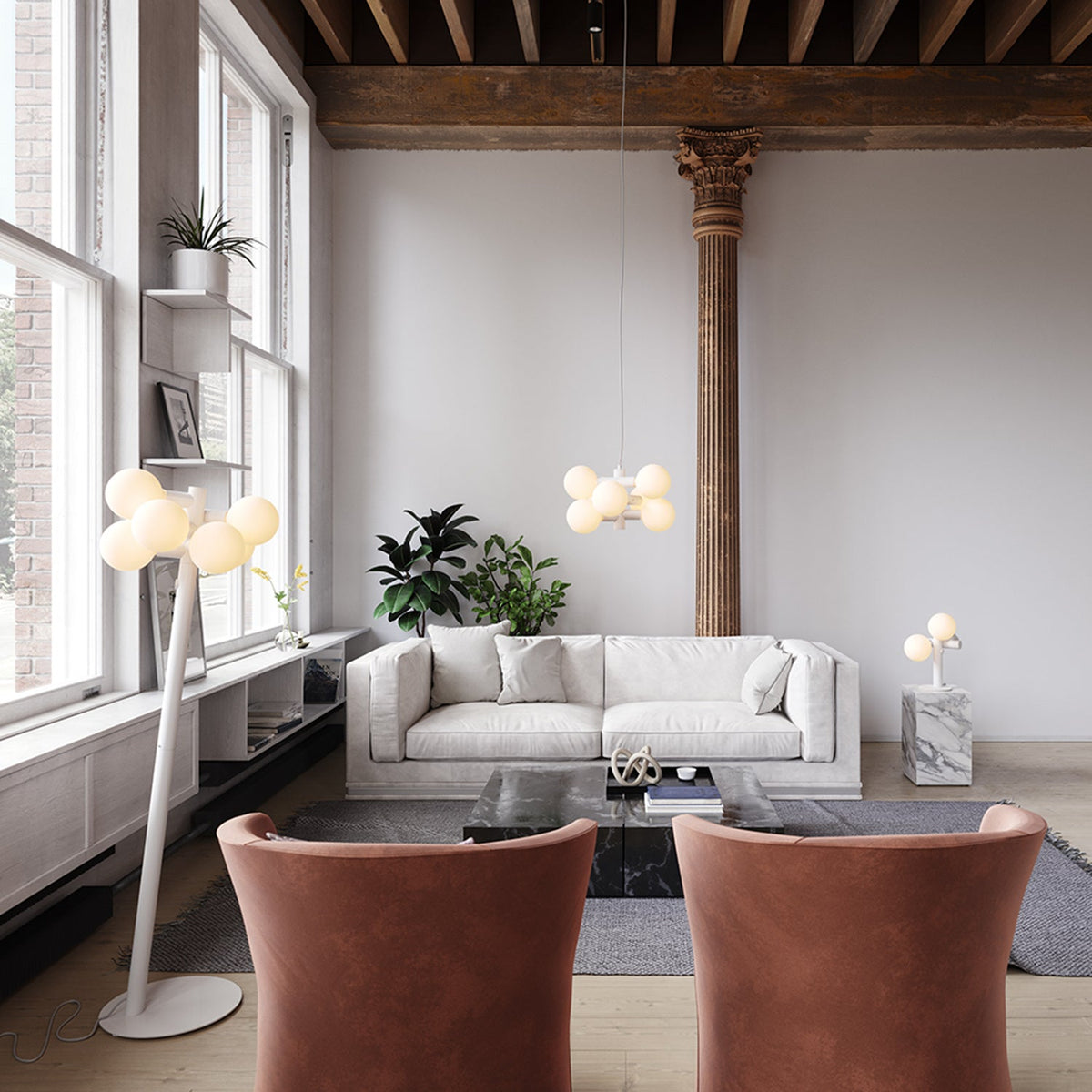 Featuring a table and floor lamp, as well as a dramatic and elegant chandelier, Echo is a modern take on holistic lighting and offers a dynamic solution for any interior.