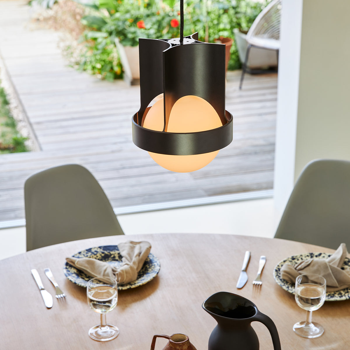 - Pendants and Table Lamps fitted with dark grey braided cable