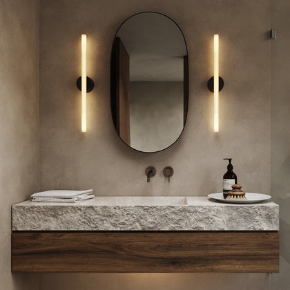 A decorative light fixture ideal for bathrooms, kitchens and outdoor spaces.