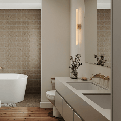 Elevate your bathroom space with elegant lighting designs, including IP44 wet-rated fixtures.