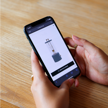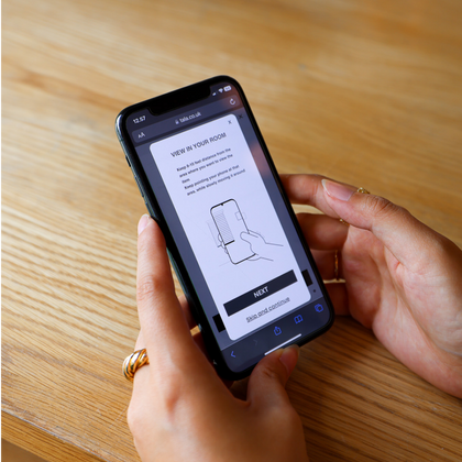 An overlay will appear with the 3D model of your product. Move it around with your mouse or finger, or click on the 'View in your room' button to see it in AR.