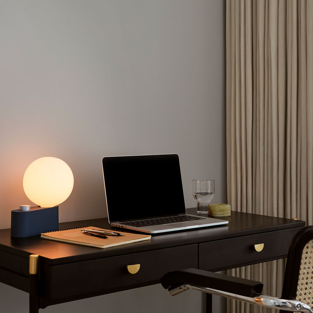 Paired with the matte-porcelain Sphere IV LED bulb, featuring Dim to Warm technology.