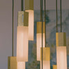 An expression of nature’s mathematical beauty, the Basalt Nine Pendant combines nine irregular hexagonal pendants with nine translucent mouth-blown borosilicate glass bulbs to create a dramatic statement light that will transform any large interior space.