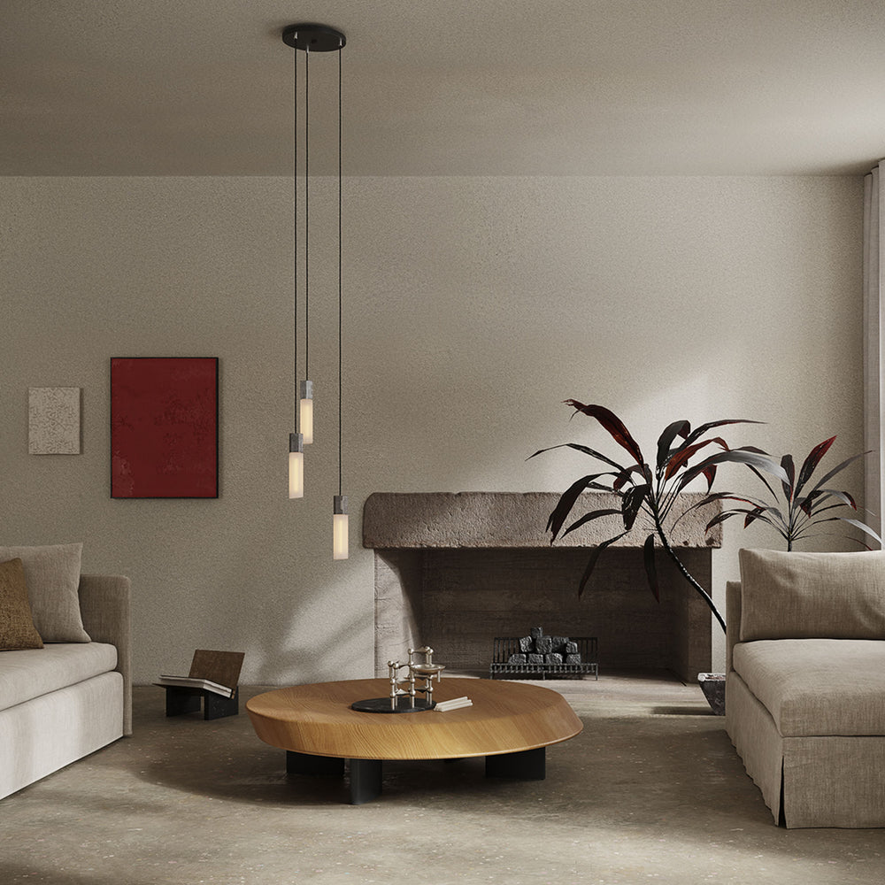 Evoking nature’s magnitude, the Basalt Triple Pendant combines three irregular hexagonal pendants with three translucent mouth-blown borosilicate glass bulbs, creating a truly unique ceiling light fixture.