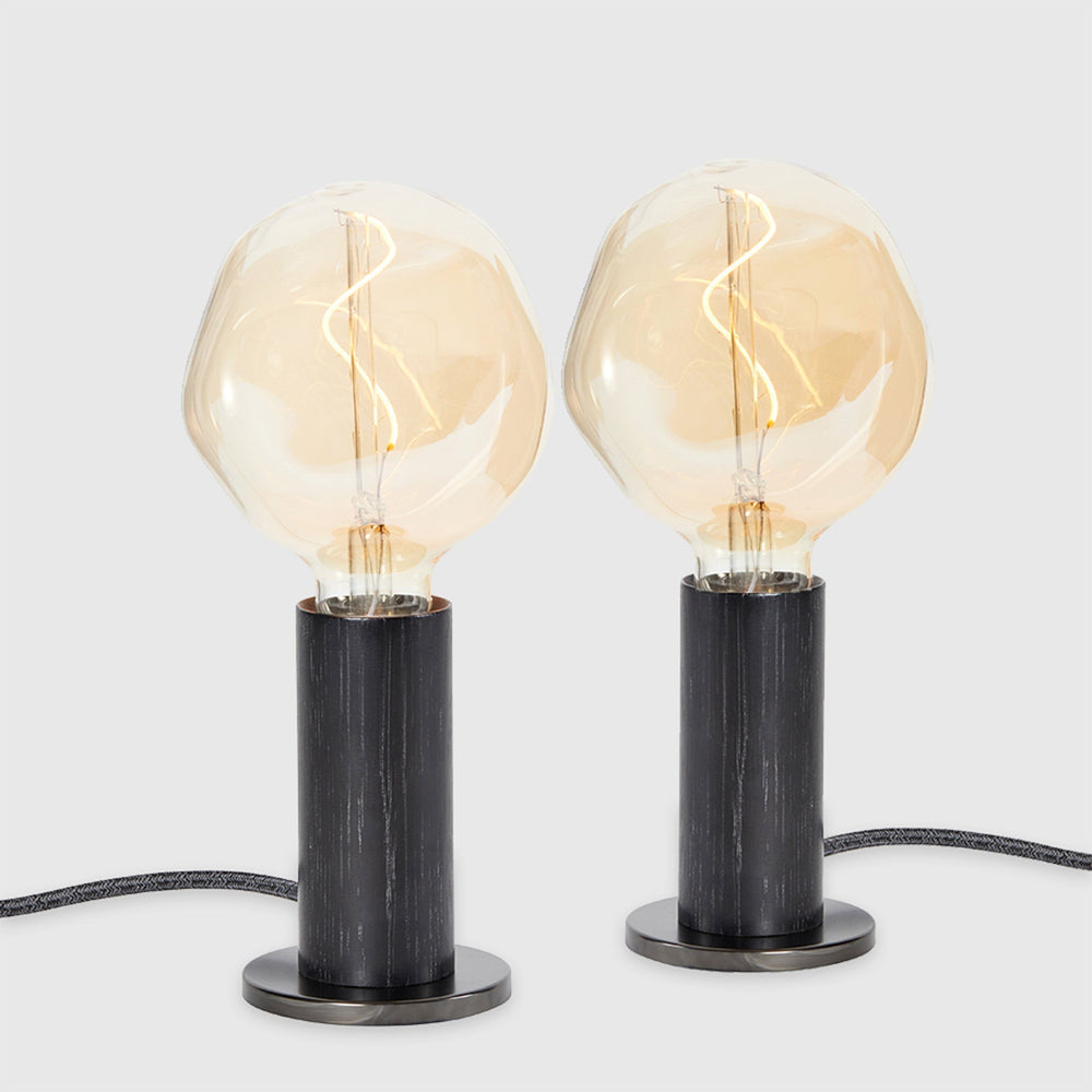 Made from solid wood and a satin brass or gun metal base, Knuckle Table Lamps set the tone for any setting. Each comes complete with a tactile in-line dimmer and pairs perfectly with any of our E27 LED bulbs.