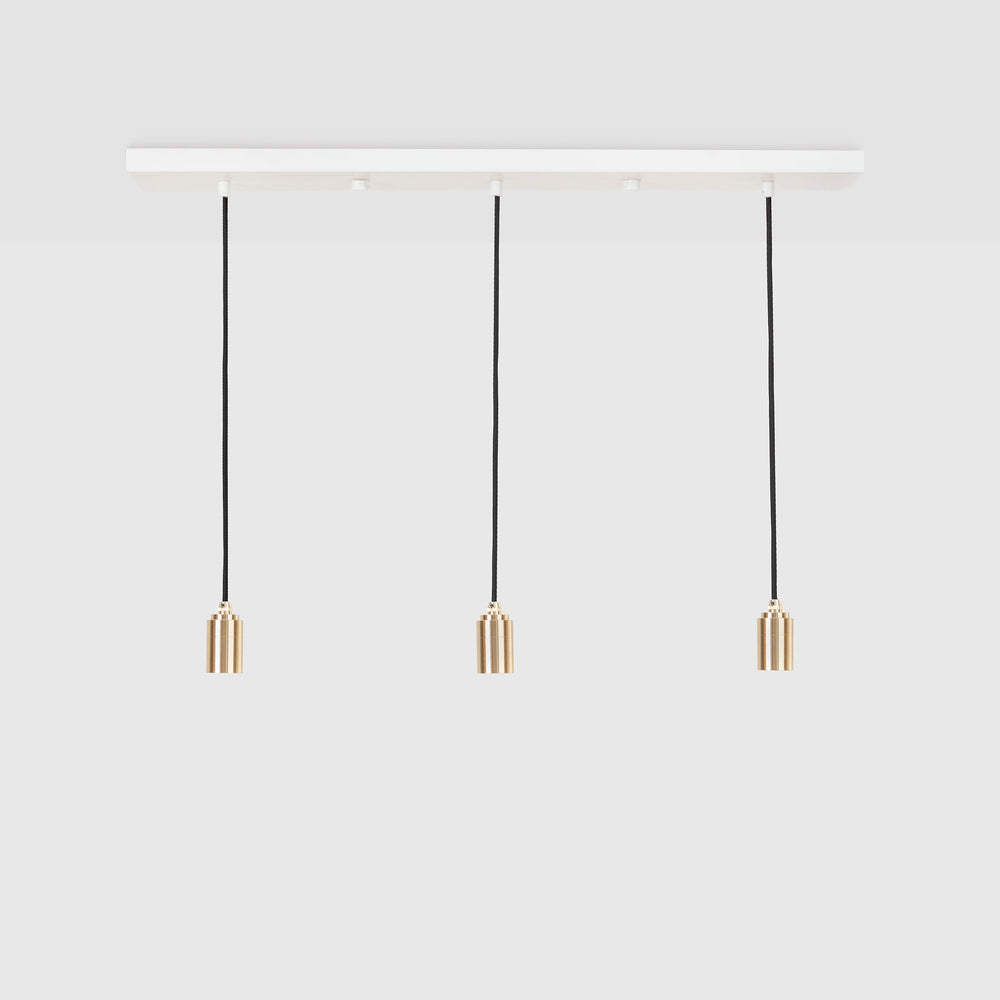 The Brass Linear Triple Pendant combines three signature Brass pendants with the sleek and sturdy linear canopy. Designed to display a trio of decorative bulbs in a uniform row, this is ideal for illuminating a kitchen island, dining table or hallway. The white powder-coated steel frame merges seamlessly with your ceiling, while offering a hardy, secure base from which to hang your lights.