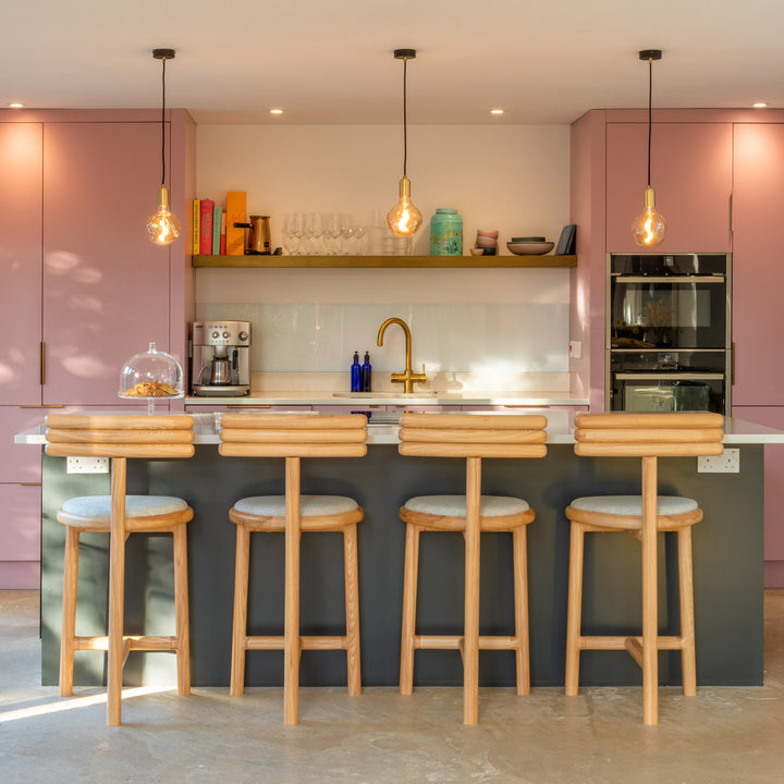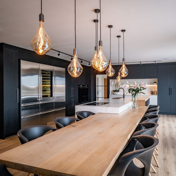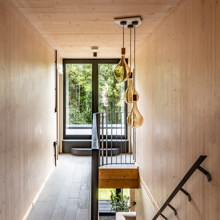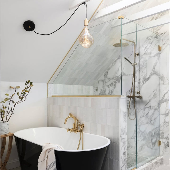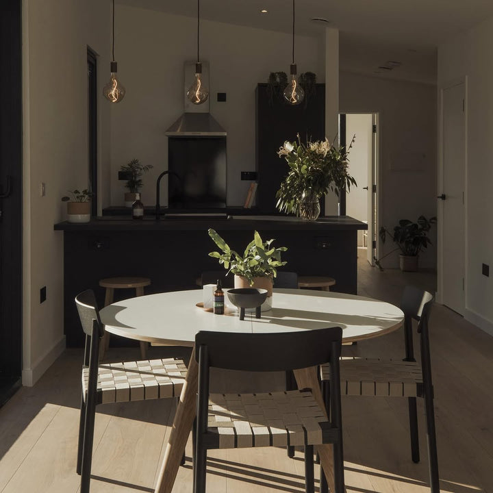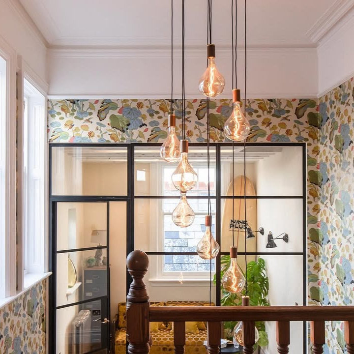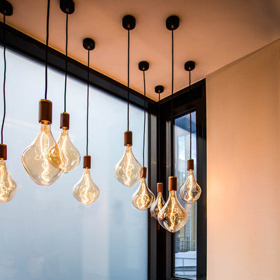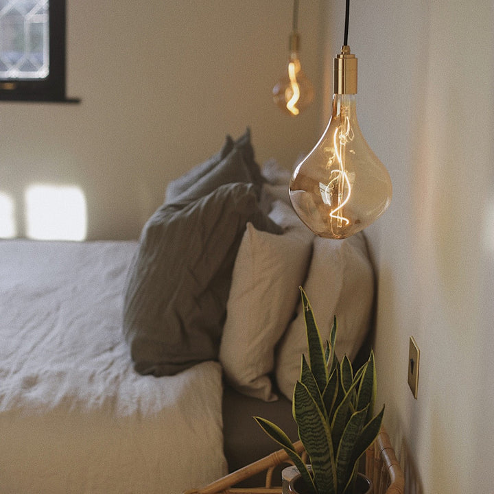 The Brass Linear Triple Pendant with Voronoi II is a new way to display our most popular bulb and pendant combination. Complete with three signature Brass pendants, the sleek and sturdy linear canopy is designed to display a trio of decorative bulbs in a uniform row. The white powder-coated steel frame merges seamlessly with your ceiling, while offering a hardy, secure base from which to hang your lights. Ideal for illuminating a kitchen island, dining table or hallway.