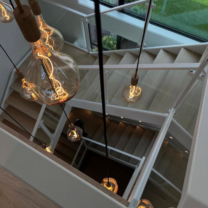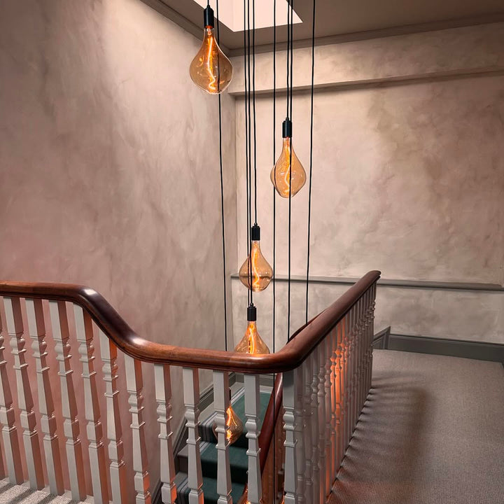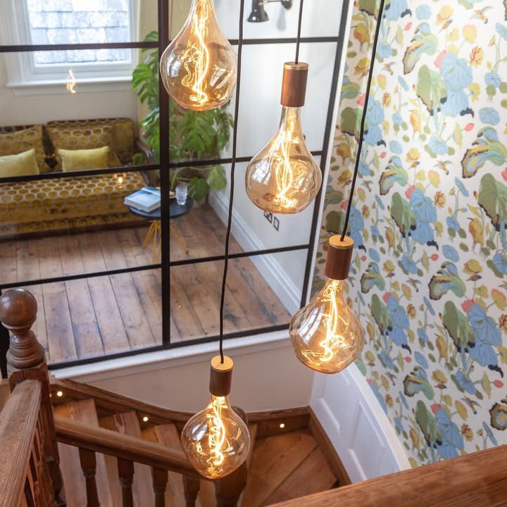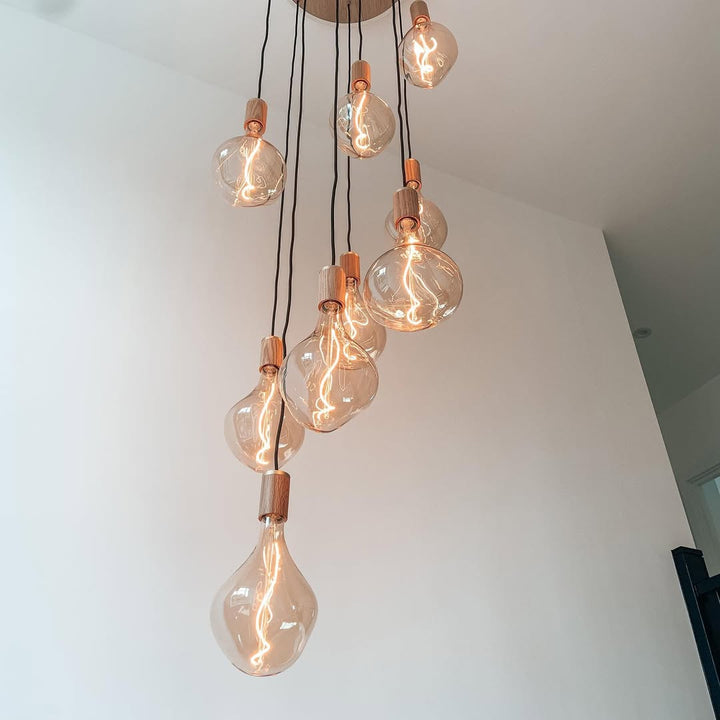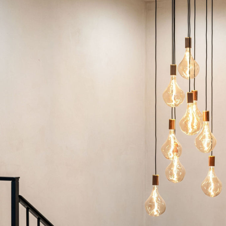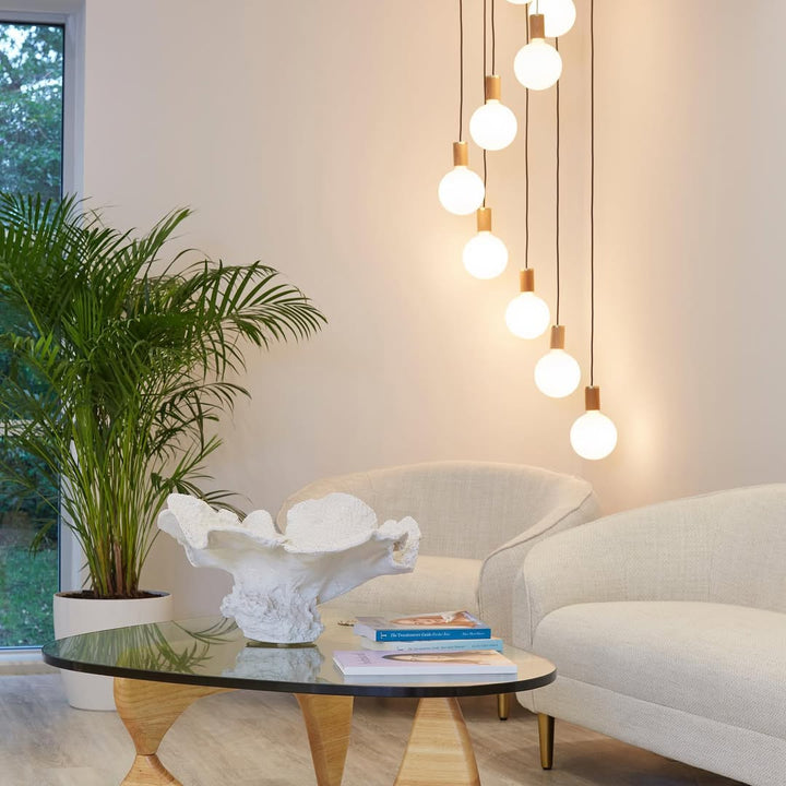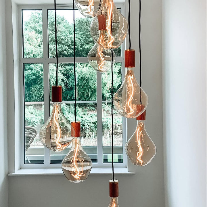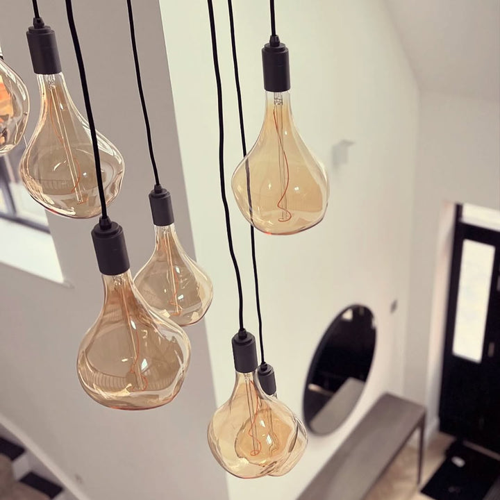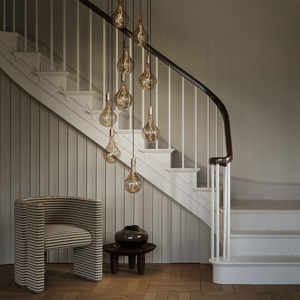 Purchase a fixture in the finish of your choice and mix and match with our E27 bulbs to suit your individual style. Recommended bulbs include Oval II, Sphere V and Voronoi III (pictured).
