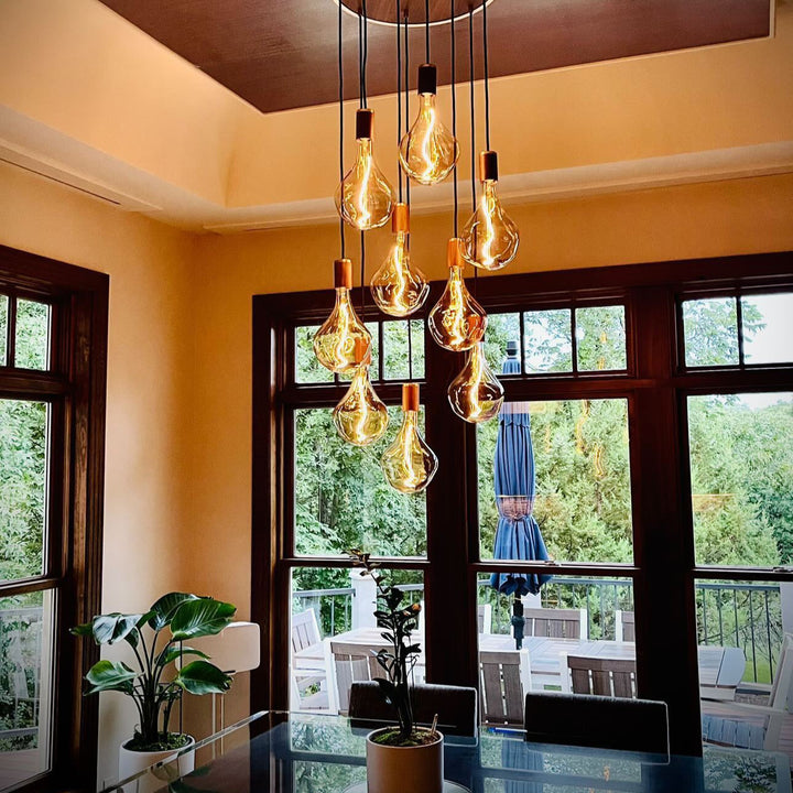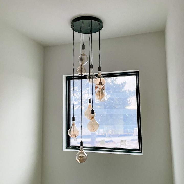 This latest statement light fixture from Tala combines nine signature pendants with nine statement, decorative Voronoi II bulbs, all housed in a large ceiling canopy.