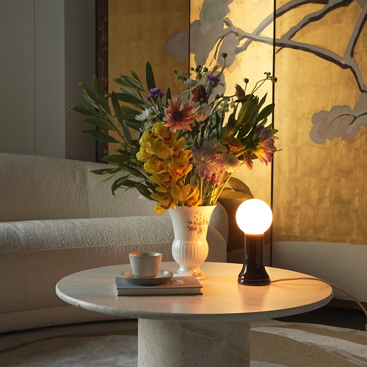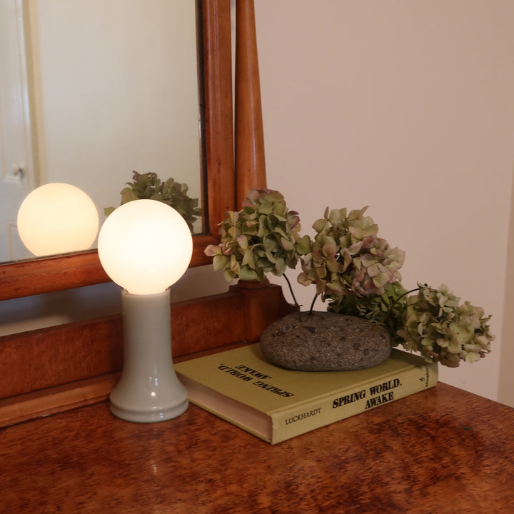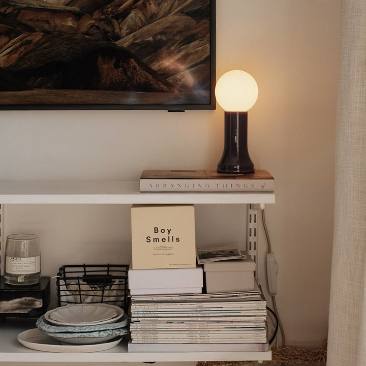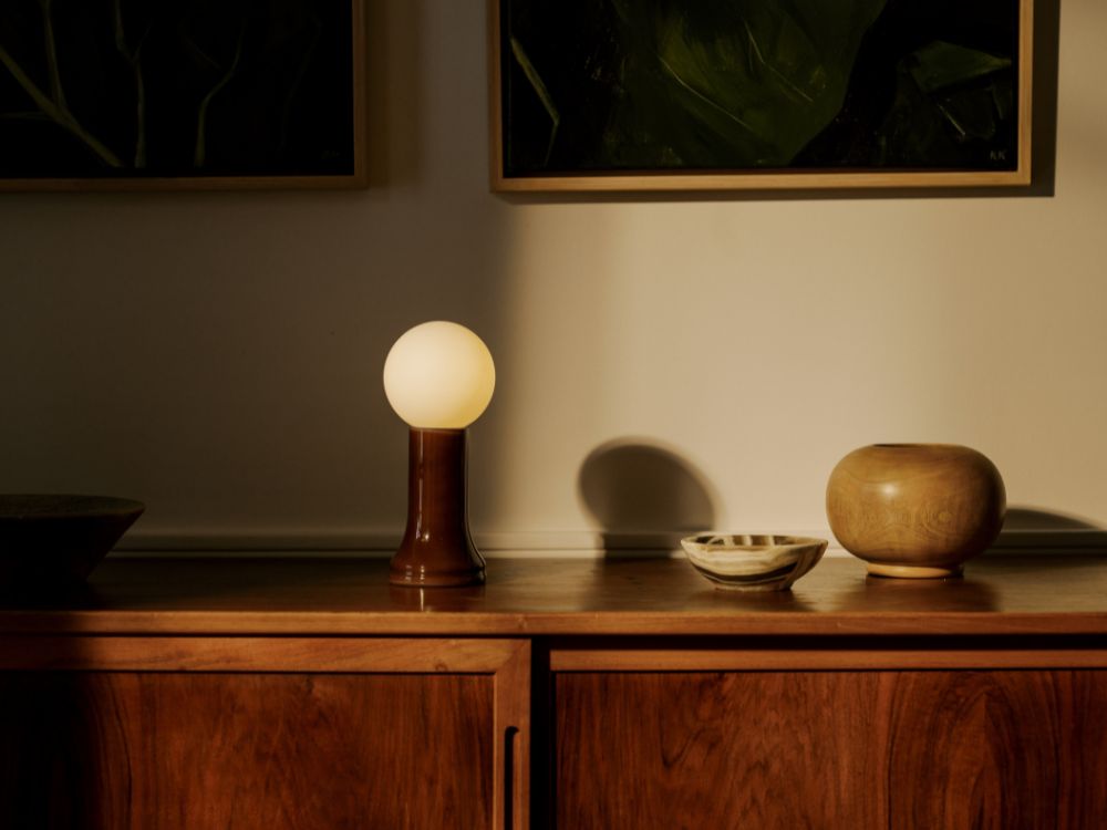Mouth-blown from recycled glass and referencing the form of the light bulb before it is sealed, Shore is paired with a spherical matte white bulb and in-line dimmer, offering unrivalled Dim to Warm technology.