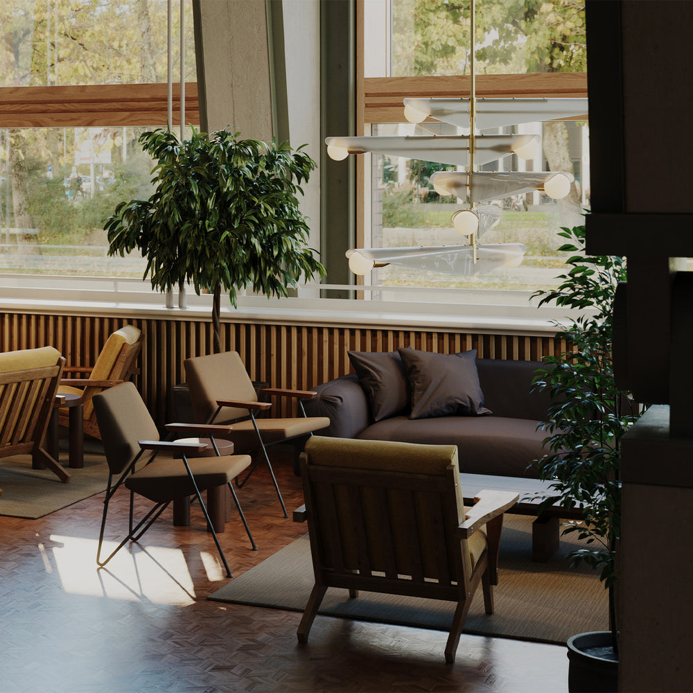 Inspired by the graceful descent of sycamore seedpods, our Sycamore Chandelier captures the natural beauty and elegance of these delicate seeds. The chandelier features glass wings that curve gently over a brushed solid brass frame, embodying the seed's translucent quality and illuminating any space with a soft, warm glow. The design celebrates the rhythm of the seasons, reflecting the serene flights of sycamore seeds in spring and autumn.