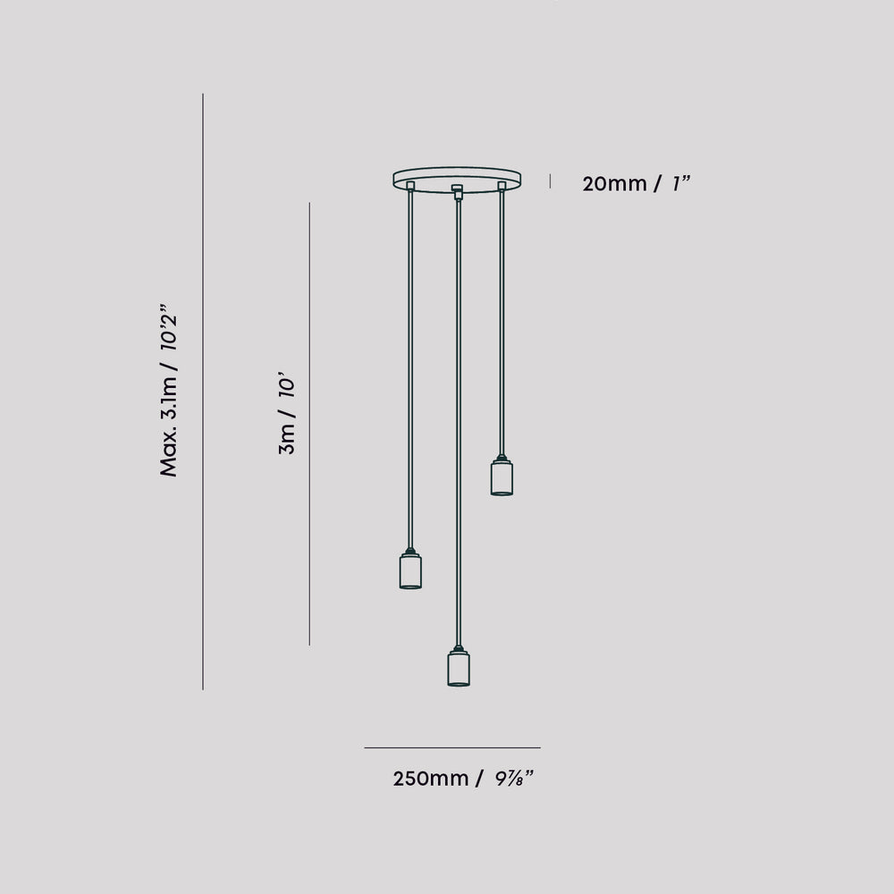 The Triple Pendant is an all-in-one solution to display decorative light bulbs from your ceiling.