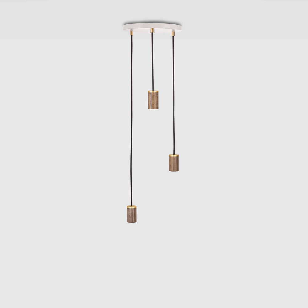 Available with a white or black ceiling canopy, three of Tala's signature pendants can hang at varying heights to create a dramatic cluster of light and eye-catching design feature for your interior space. Choose from Brass, Graphite, Oak or Walnut pendants.